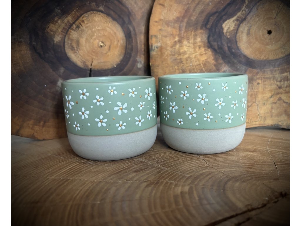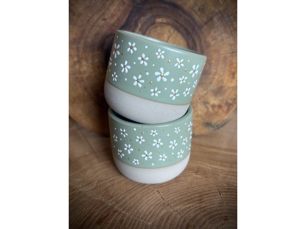 Ručně malovaný keramický pohárek o objemu 150 ml. Na zadní stranu je možné doplnit text na přání bílou barvou (slovo, maximálně dvě). Stačí uvést do poznámky (zahrnuto v ceně).
