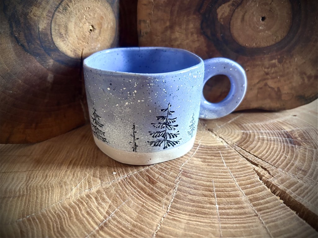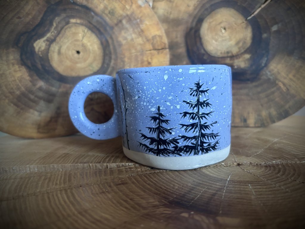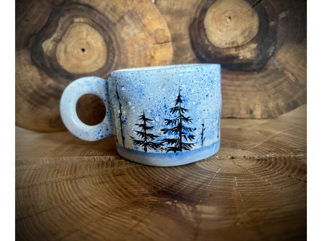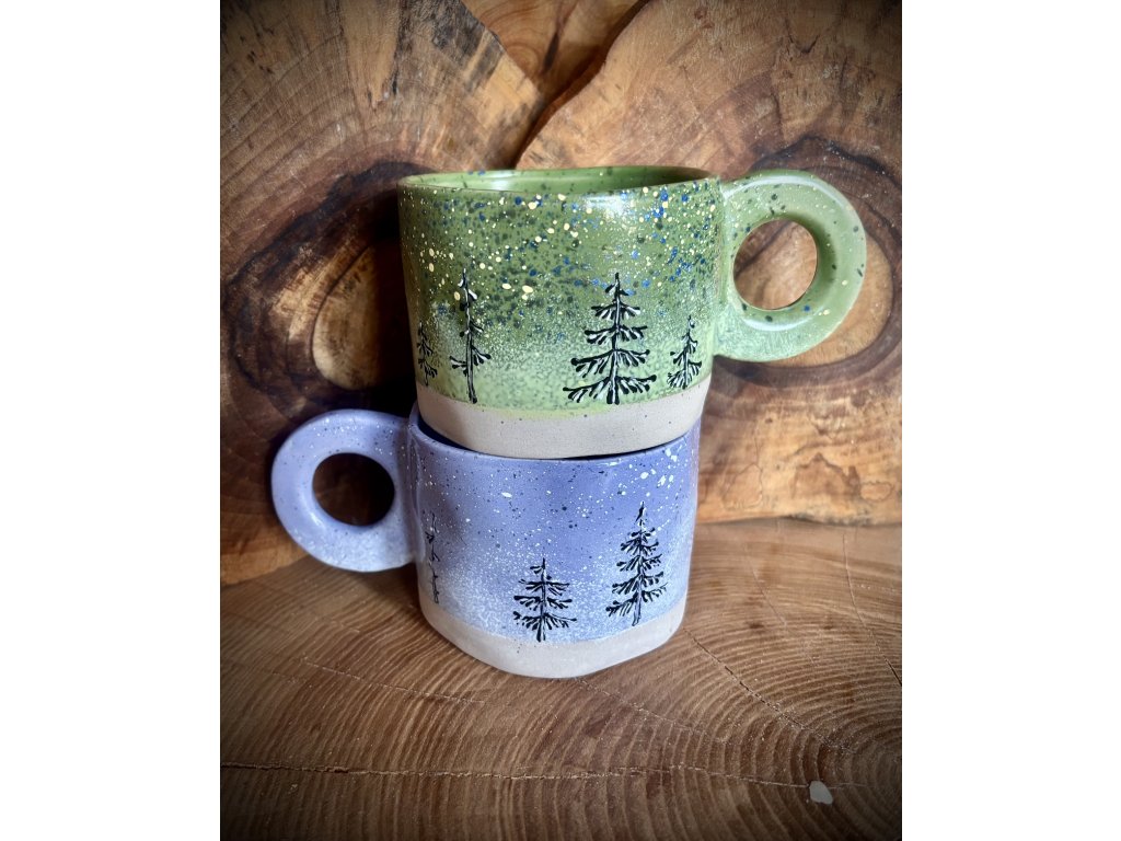 Keramické ručně malované hrnky o objemu 300 ml s motivem lesa.