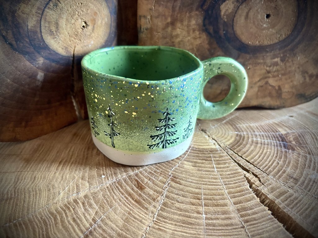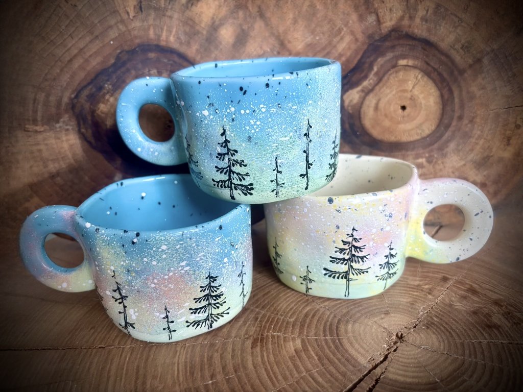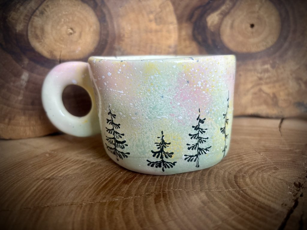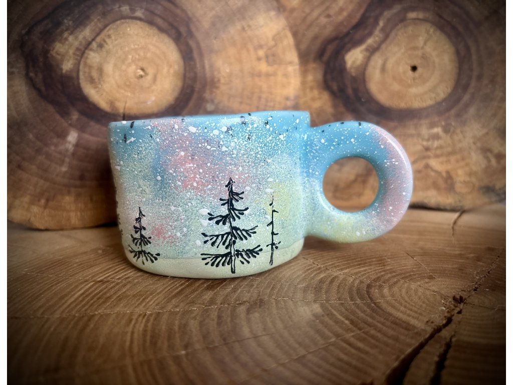 Keramické ručně malované hrnky o objemu 300 ml s motivem lesa.